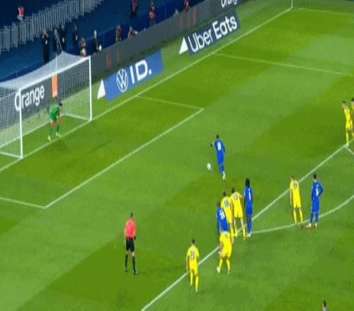 比赛开始后,主场作战的法国没有意外将对手压制住;第4分钟,奥利塞沿着右路外围内切抽射,特鲁宾稳稳将球没收;第7分钟,谢尔基外围推进闪开角度右脚抽射,皮球直接抽在了防守的米哈夫科身上弹出界。第17分钟,姆巴佩同样在禁区外突施冷箭,特鲁宾不敢怠慢立马下地将球扑出;第42分钟,巴尔科拉左路外围兜射,仍然被特鲁宾飞身扑出底线;法国队上半场得势不得分,射门次数是10-0。