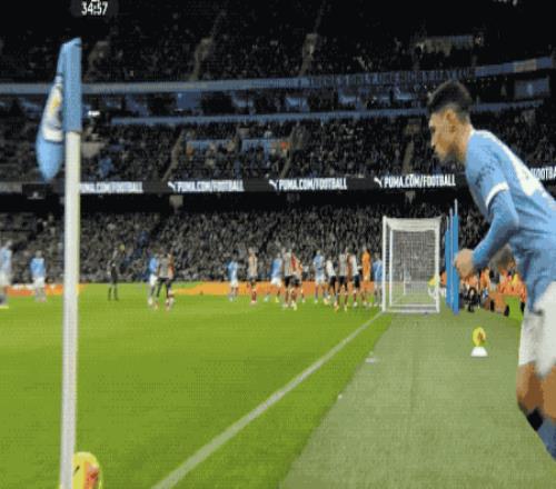 第34分钟,福登开出角球,格瓦迪奥尔高高跃起,头槌破门。短短的3分钟,曼城连进两球。