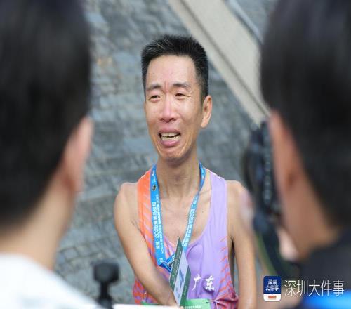 孙亮亮在赛后采访中喜极而泣,并向记者展示“第四名冲线”的序号牌。
