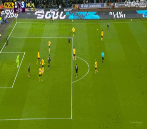 第8分钟,曼联就创造出了一次绝佳的破门机会,达洛特接到队友后场长传后,从左路快速前插获得了单刀机会,但推射角度太正,被狼队门将扑出了底线。