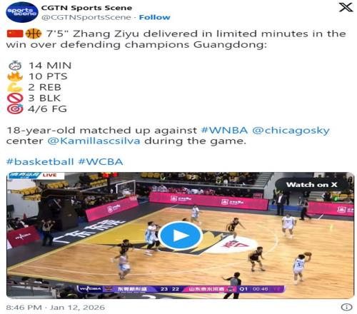 年仅18岁、身高达到7英尺3英寸(约2米21)中国女篮新星张子宇,近日在职业赛场上的表现引爆社交媒体——因为她在WCBA赛场上,正面“碾压”多位WNBA成名球员。