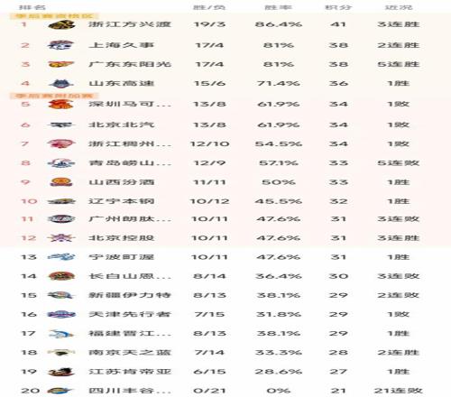 CBA最新积分榜
