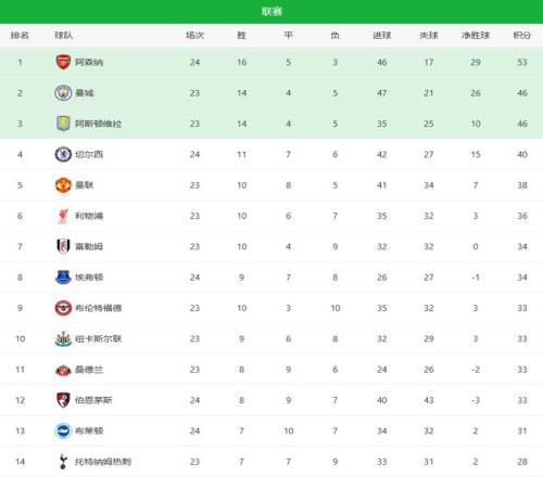 随着切尔西32逆转+阿森纳40!英超最新积分榜:曼联被挤出前四