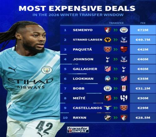 冬季表现不佳的曼城,早早购入塞梅尼奥(7200万)和格伊(2300万)收手,居然就锁定了冬窗俱乐部投资和引援转会费“双标王”。上半程表现糟糕的热刺仅完成中场加拉格尔(4000万)和巴西左后卫索萨(1500万)两笔金额较大的交易,但布伦南·约翰逊(4000万)在内5人离队,队内阿根廷中卫罗梅罗公开抱怨阵容不整。