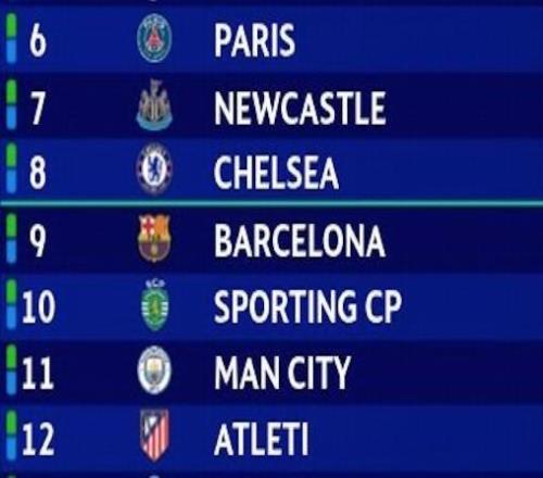 欧冠联赛阶段最后一轮18场同开,赛前6-13名的八支球队同积13分,对前八的直通名额展开了激烈争夺。不过半场过后,八支球队里仅曼城取得了领先。半场比分巴黎圣日耳曼1-1纽卡斯尔